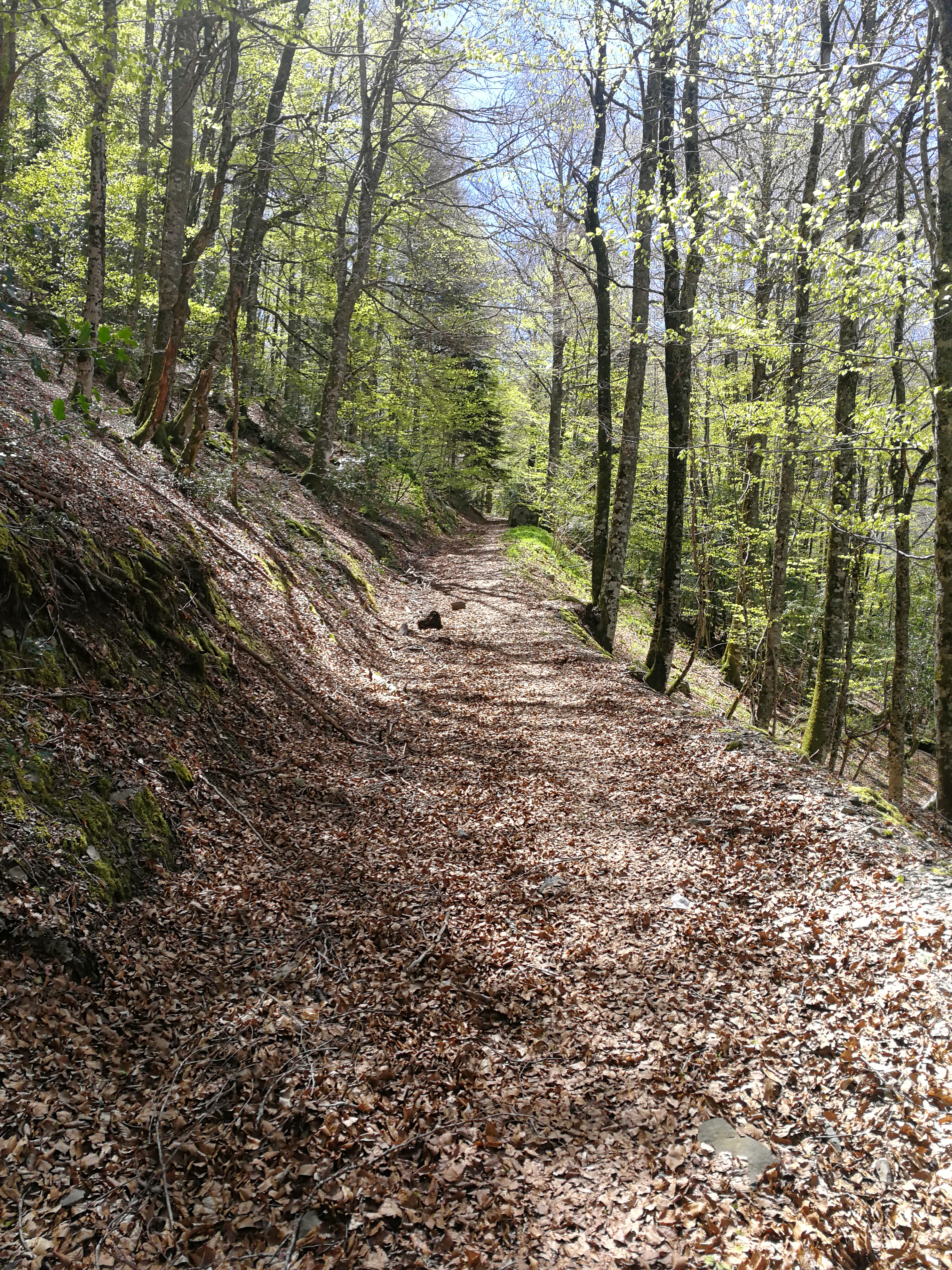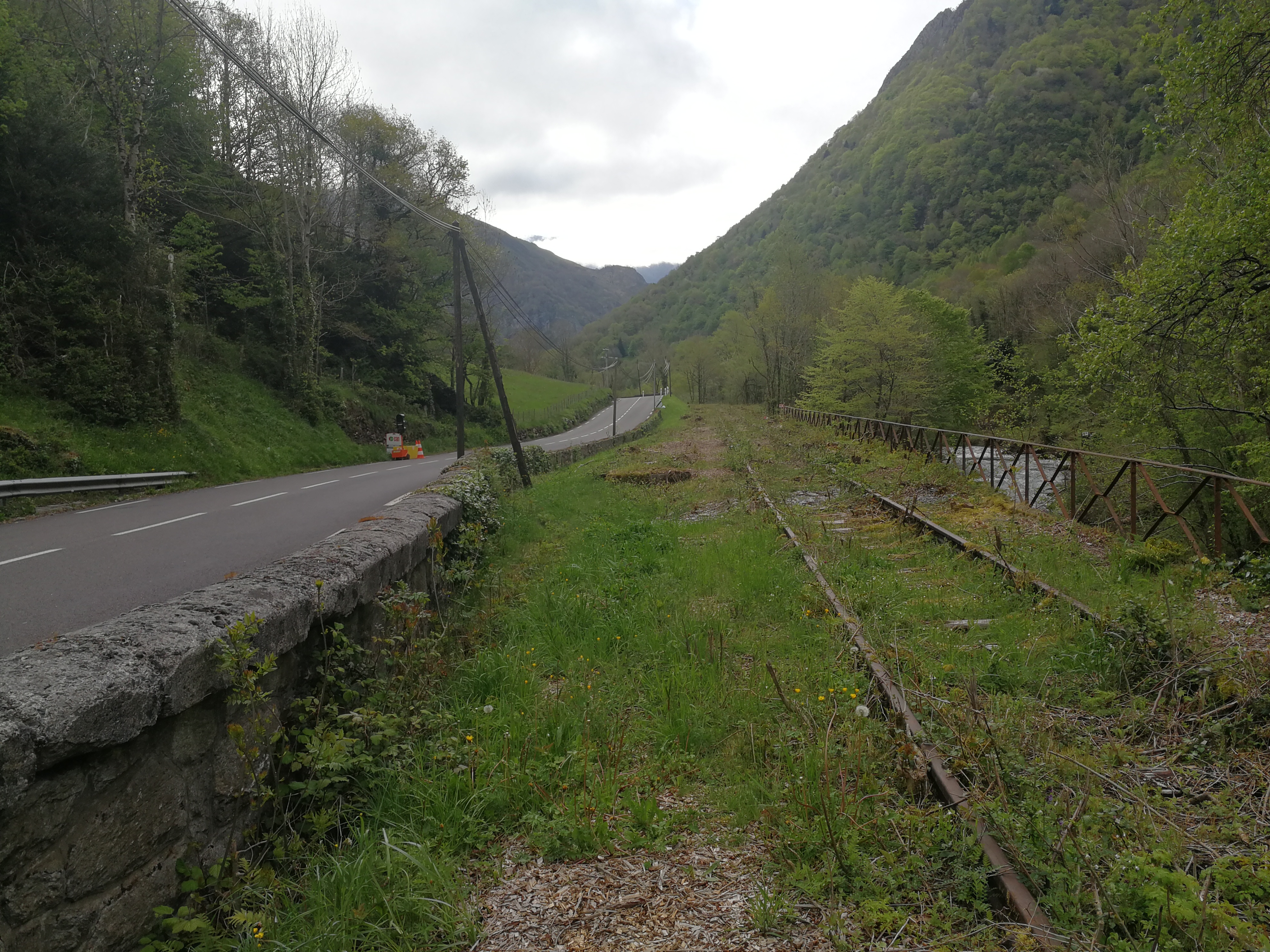 Breakfast at the hotel and then along the road again. Did choose the roadside to keep the speed. I had realized that the GR itself could be difficult sometimes and definitely slower. Then you have to sacrifice the beauty. If you need to do three days walk in two, you must rationalize. Consequently, I did follow the road through narrow passes between steep rock walls and in between these through somewhat broader valleys. The railway, or rather what is left of it today, above Bedous follows the road, sometimes at the left sometimes at the right side of the road. A lot of tunnels and bridges. Sometimes the banks of the old railway and some bridges have been “stolen” by the road to allow it to be broader.
