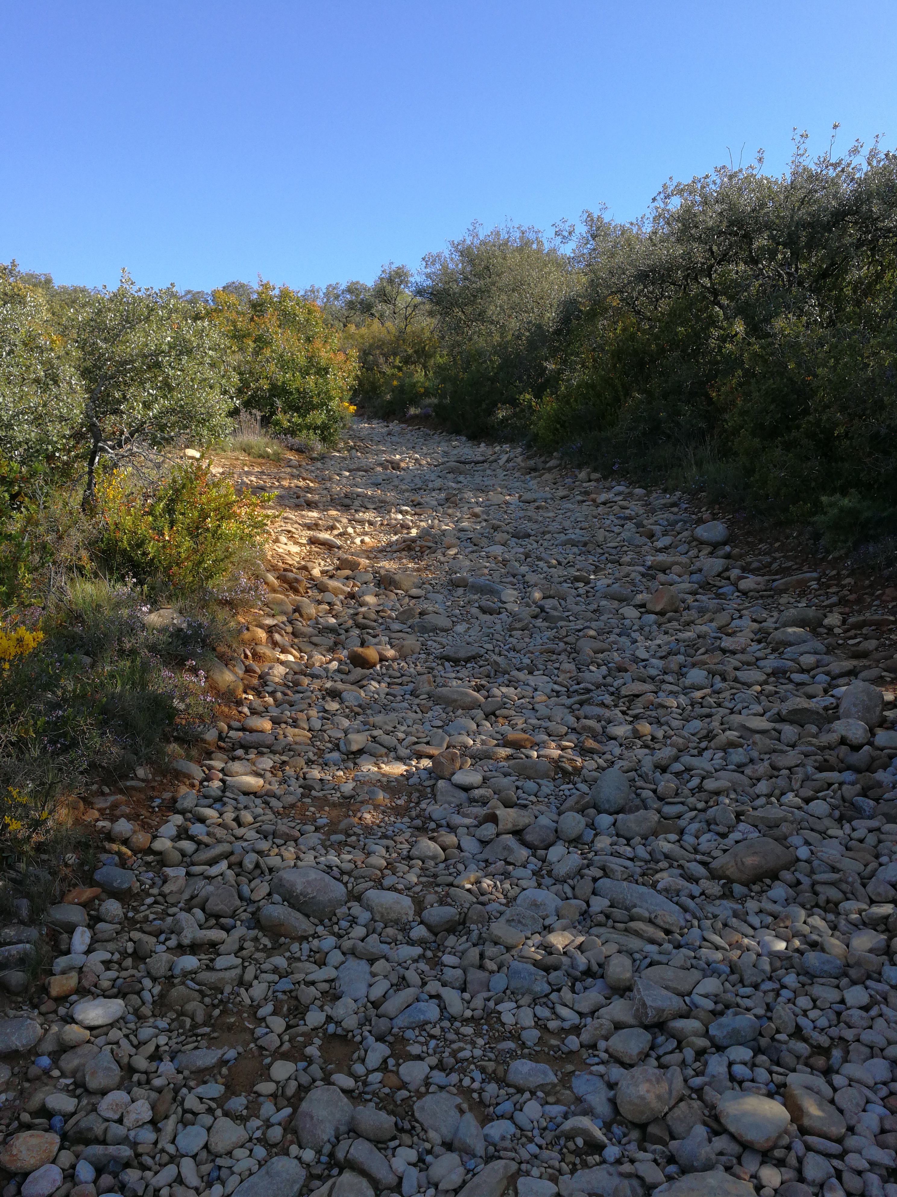 Continued downwards partially on the Camino (yes, we are in Spain now) partially on the road. Here the Camino and the GR63.3 differs a bit. The GR is probably better but goes further away from the villages. The Camino was not very good.